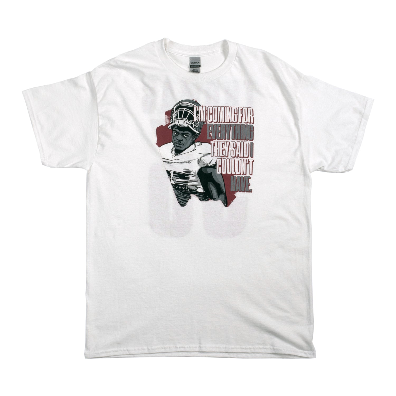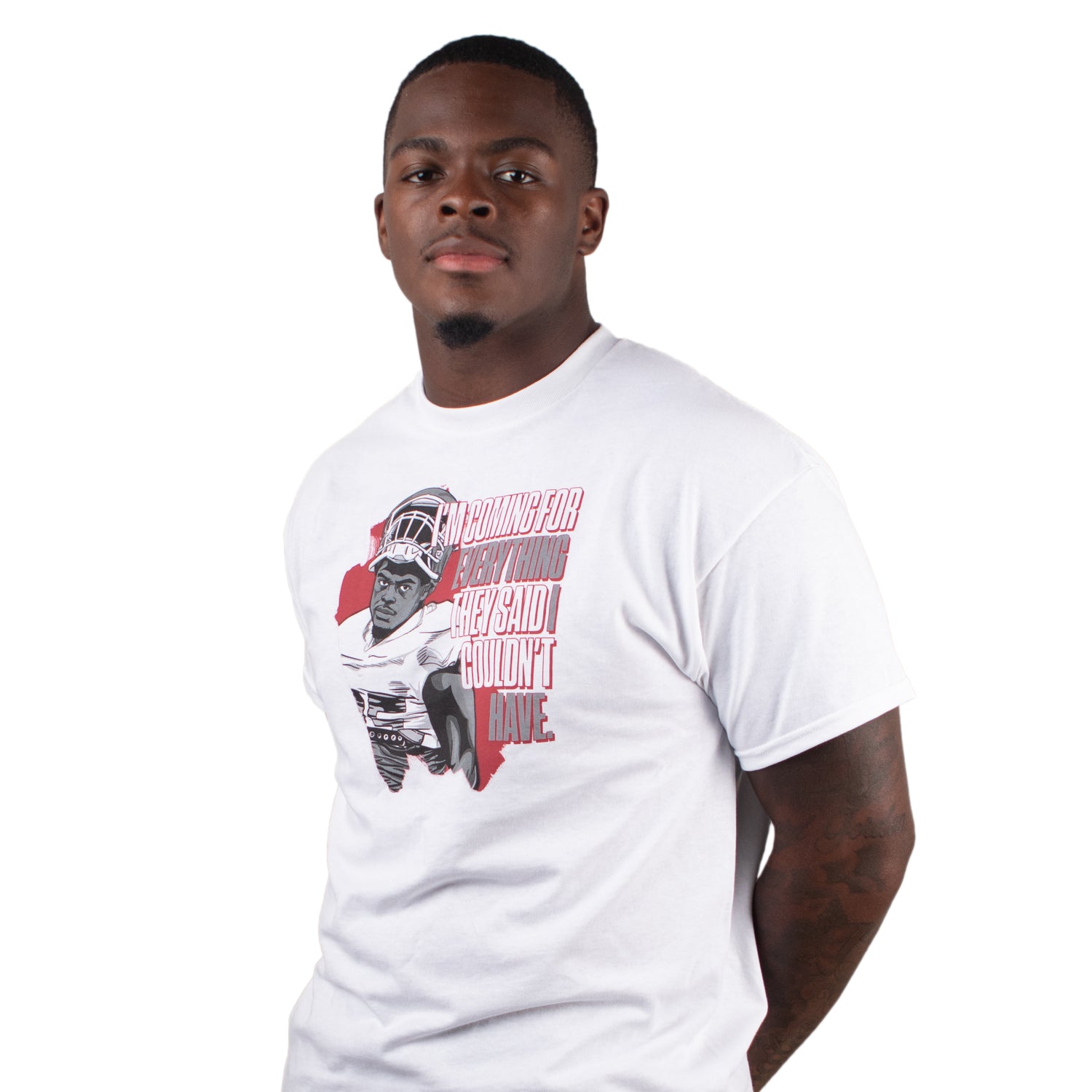 An entire season in the making. We worked on this collection throughout the season and things got a little hectic toward the end because of a certain coach. But we now proudly present the Isaiah Thomas NIL collection and the IT T-Shirt in black and red with the slogan that drove him throughout the season and into his upcoming NFL career.