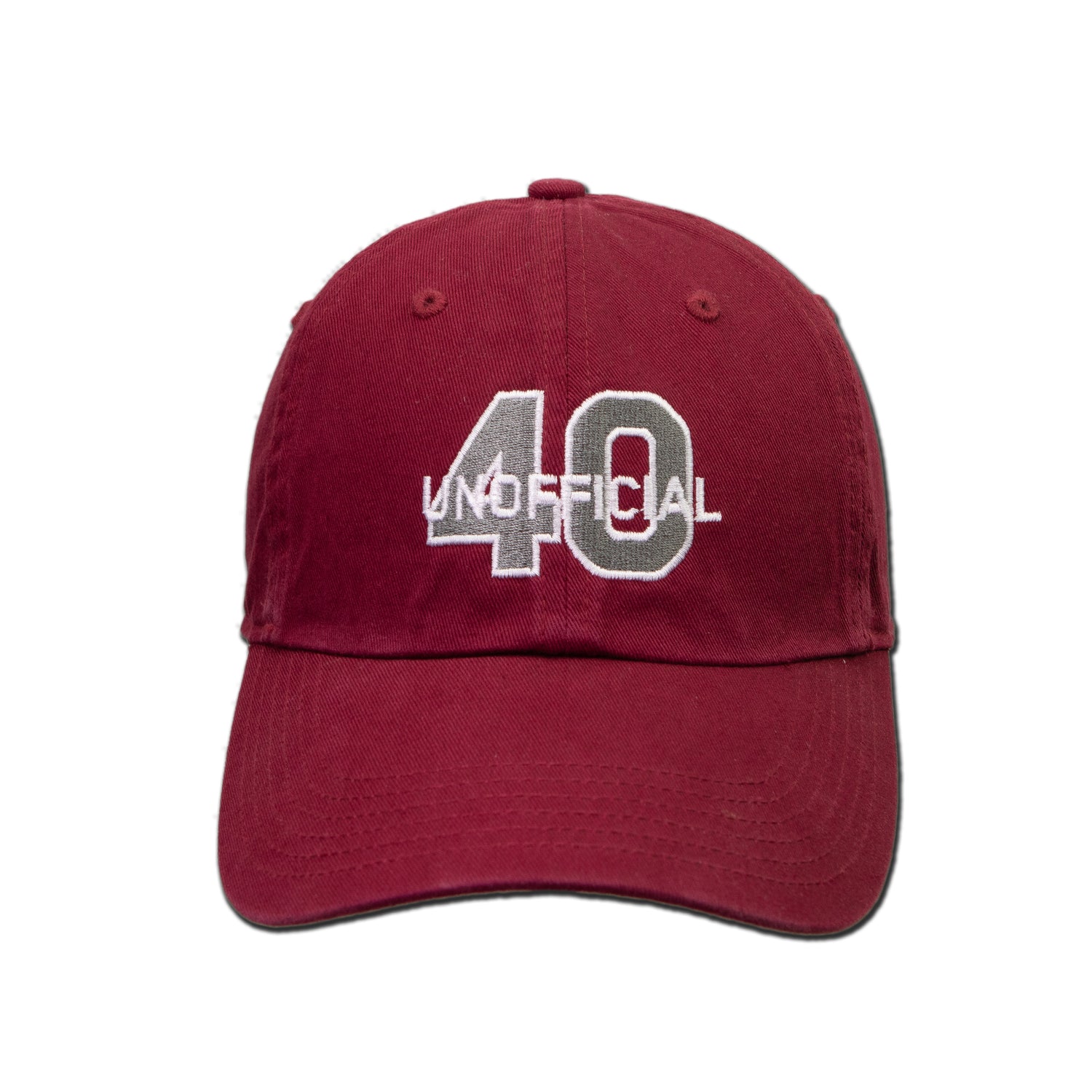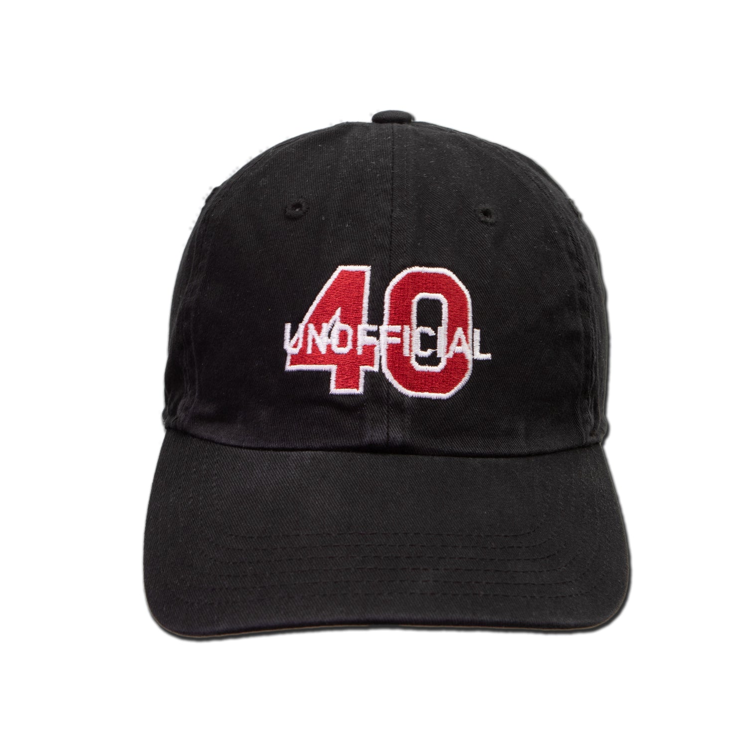 Your super relaxed Unofficial 40 Podcast hat comes in white, black or crimson/cardinal. Our "dad hat" in a heavyweight chino twill and an adjustable strapback backstrap. These hats are great for running to the store or gamedays. Let everyone know you support the Unofficial 40 podcast in style.