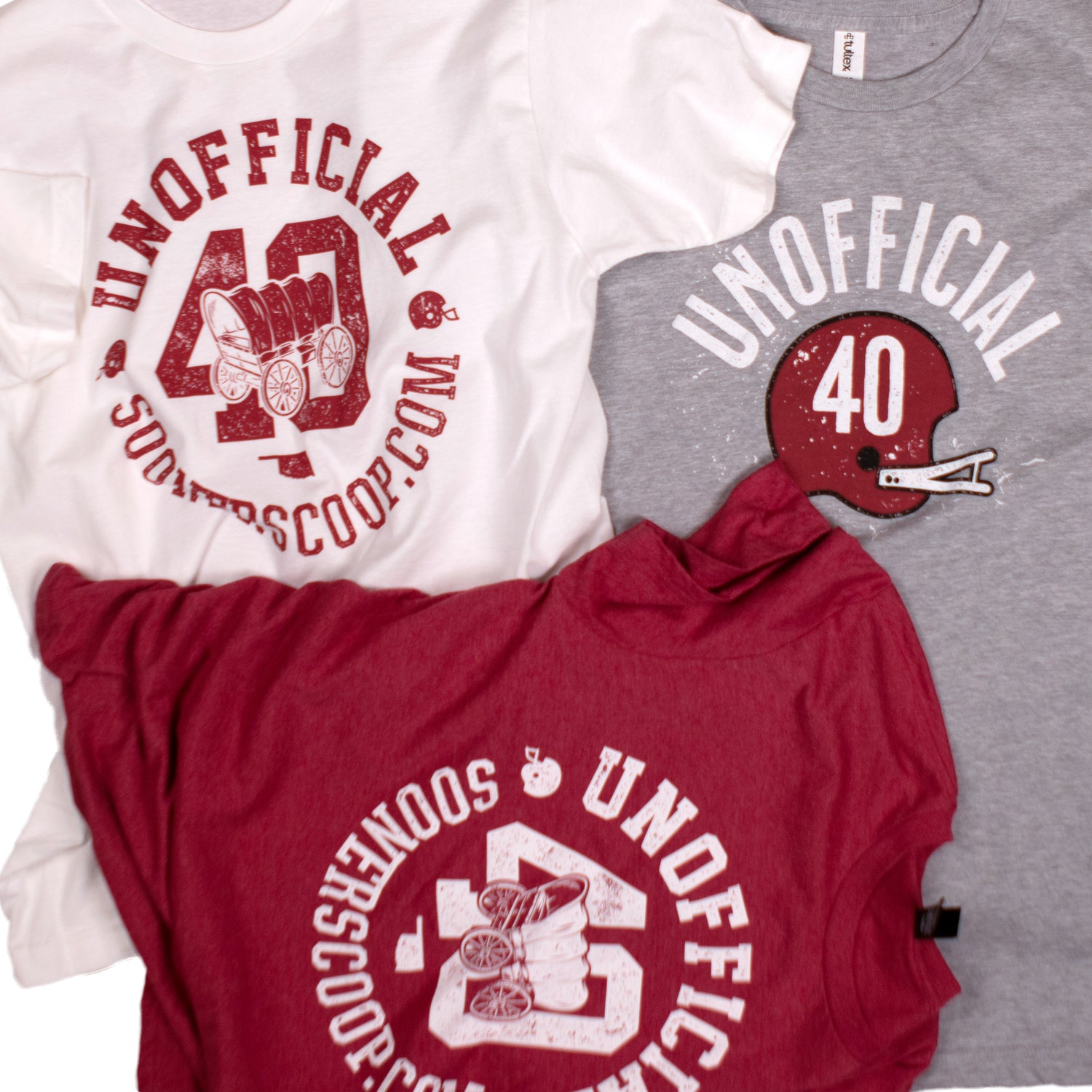You asked for it and we've finally released our Unofficial 40 podcast t-shirt line. Wear this shirt and people are bound to ask or wonder what the hell Unofficial 40 means. This first collection is available in heather red and heather grey. We searched far and wide to find the perfect shade of crimson for Sooner fans and we think we nailed it. These shirts are very soft. The crimson versions are some of the softest shirts we've ever felt.